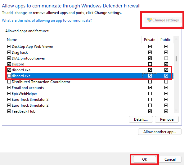 ファイアウォールをオフにした後、Discordアプリを開いて、問題が持続しているかどうかを確認します。問題が解決した場合は、ファイアウォールを有効にし、Firewallを介してDiscordが通信できるようにして、更新に直面しないようにします。これがあなたがそれを行う方法です: