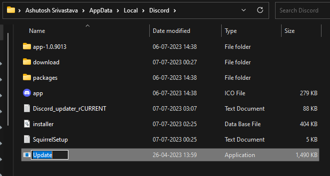 4。更新ファイルの名前を必要なものに変更し、Discordを起動します。