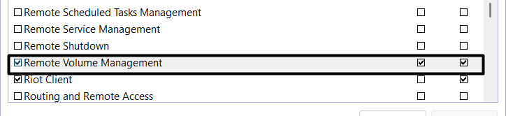 4。その後、を確認してください公共またはプライベート次のチェックボックスWindowsリモートボリューム管理サービス。