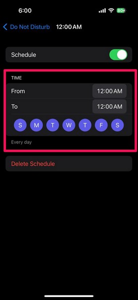 6。そうでなければ、できますトグルを無効にしますのためにスケジュール完全にオプションスケジューリング機能をオフにします邪魔しないでください。