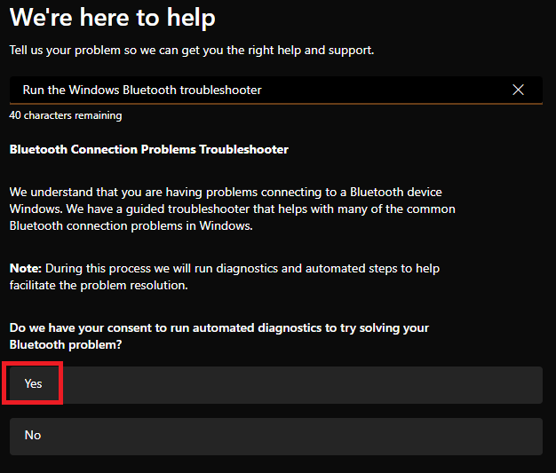 5。それは開きます助けを得るページ。トラブルシューターを実行して、はいボタン。
