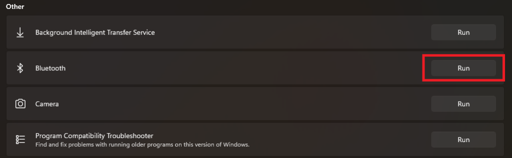 4。クリックします走るの隣のボタンブルートゥーストラブルシューティング。