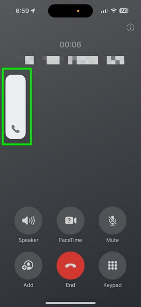 それが最低に設定されている場合、デバイスで耳を傾けていない耳のスピーカーが耳のスピーカーのボリュームが低い結果であることは明らかです。ボリュームスライダーをタップして押し続け、バーがいっぱいになるまで上にドラッグします。または、iPhoneのボリュームアップボタンを押し続けて、通話中にイヤースピーカーの音量を増やすこともできます。