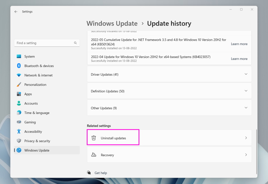 これは、最近22H2アップデートをインストールした場合にのみ機能することを忘れないでください。それ以外の場合は、希望する更新を削除することはできません。
