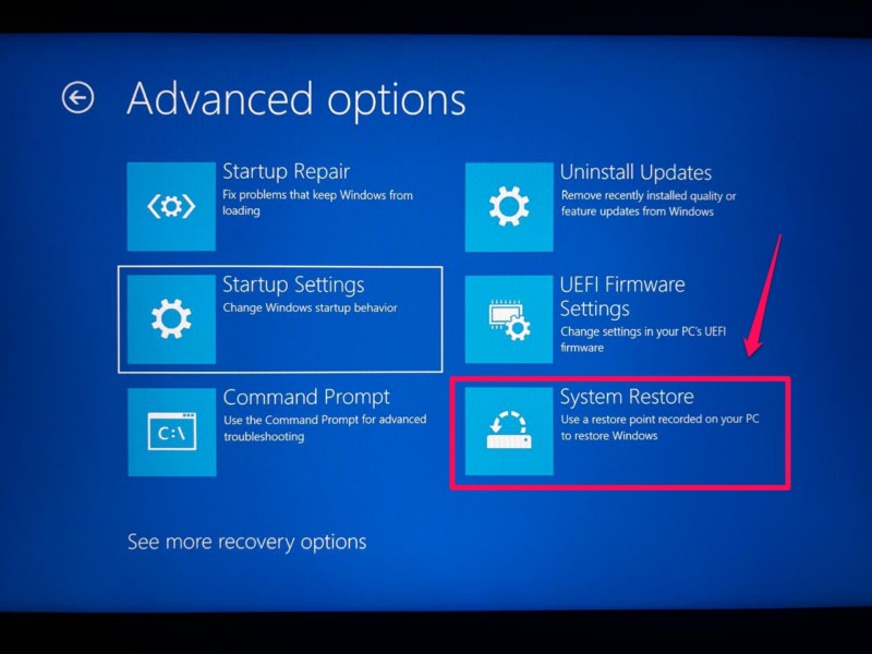 4。次のページで、矢印キーを使用しますシステムの復元ツールを選択しますEnterを押してプロセスを開始します。