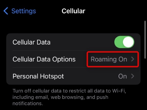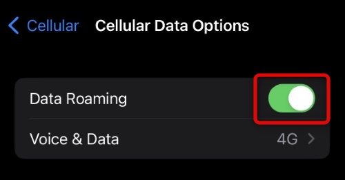 3。トグルをタップしてオンにしますデータローミング上部に。