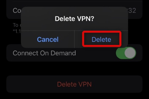 3。タップしますvpnを削除します一番下に。