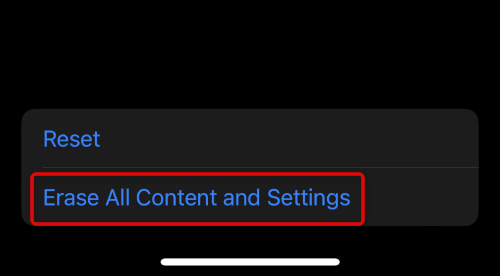 3。タップして選択しますすべてのコンテンツと設定を消去します。