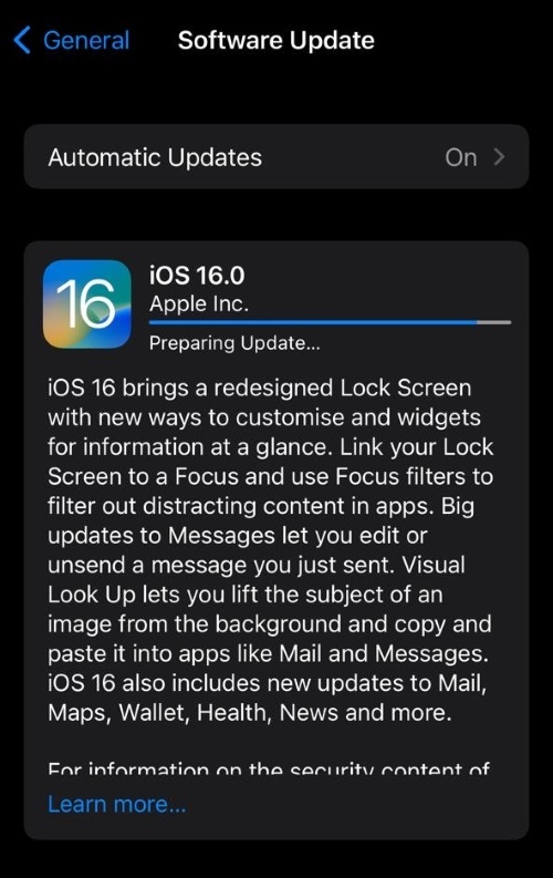 3。iPhoneは、デバイスで利用可能な更新を自動的にチェックします。見つかった場合はタップしますダウンロードしてインストールします。