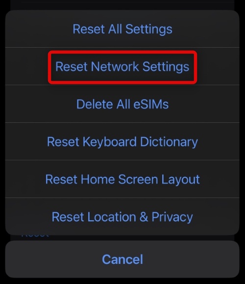これで、ネットワーク設定をリセットしてみることができます。 iPhoneを使用すると、デバイスでリセットを選択的に実行できます。これを有利に使用し、すべてのネットワーク設定を工場出荷時のデフォルトにリセットできます。これにより、ESIMの使用を妨げる可能性のあるキャッシュと設定の問題を修正するのに役立ちます。以下の手順に従って、開始します。
