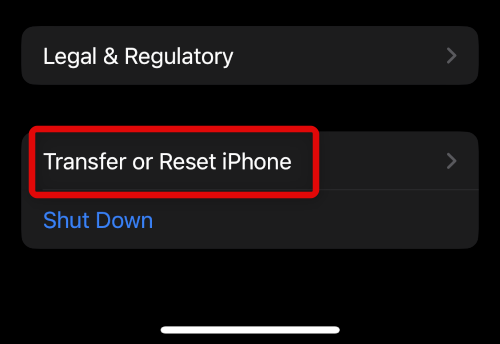 2。タップしますiPhoneを転送またはリセットします画面の下部に。