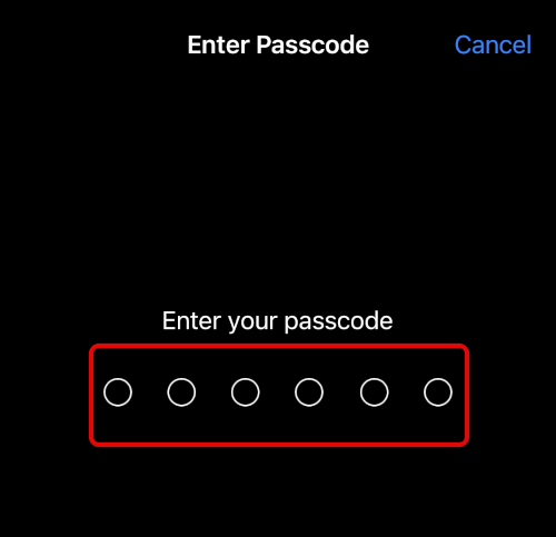 5。パスコードを入力して、身元を確認してください。