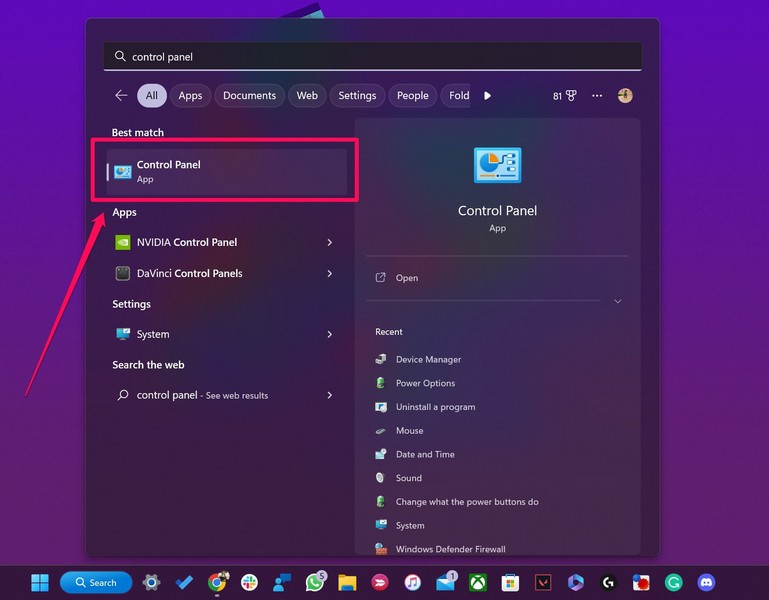 2。を見つけますコントロールパネルそしてそれを開きますデバイスで。