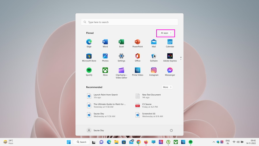 1。起動しますスタートメニューをクリックしてWindowsアイコンWindowsコンピューターのタスクバー。