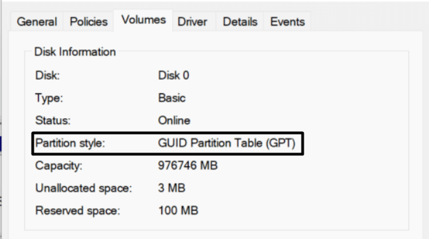 4。最終的に、ストレージドライブがGPTまたはMBRパーティションスキームを使用するかどうかを確認します。 MBRパーティションスキームを使用する場合は、GPTパーティションスキームに変換して拡張します。確認できますMicrosoftによる添付のチュートリアル同じ手順を知るため。