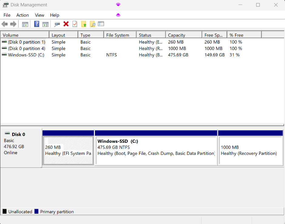 以下のパスに従うことにより、ディスク管理アプリのPCの任意のボリュームを拡張できます。