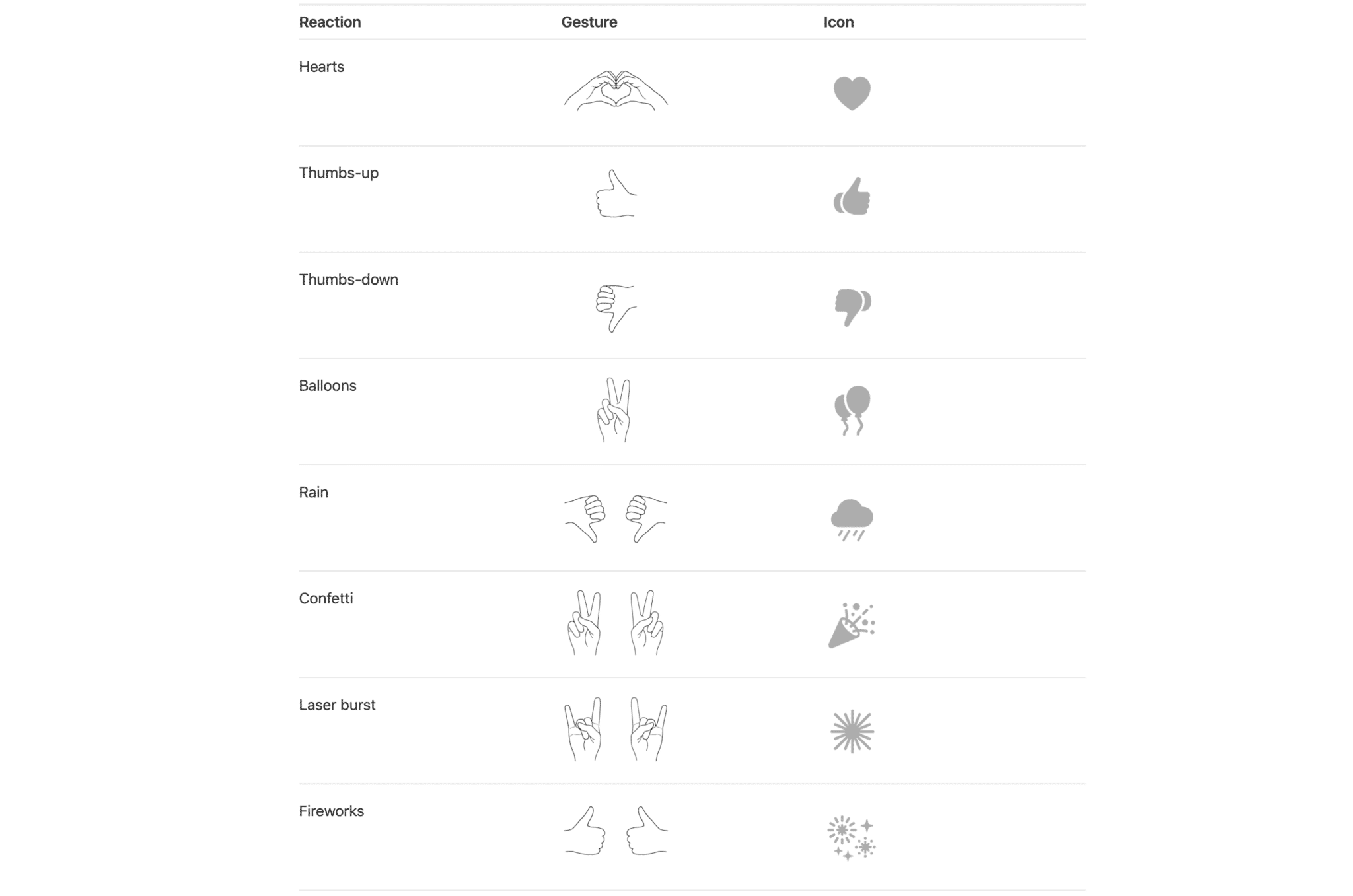 適切なハンドジェスチャーを作成することは別として、ジェスチャーがカメラの視界内にあり、顔から離れていることを確認してください。我慢して、反応が現れるまでジェスチャーを保持します。あなたの手と顔の両方がフレームに適切に見えるはずです。