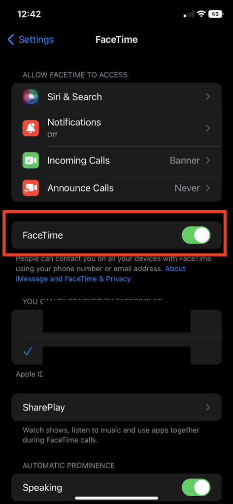 FaceTimeをオフにして再度有効にするだけで、iPhone、iPad、Mac間で動作しないFaceTimeハンドオフを修正することができるソリューションの1つです。このソリューションは、以前にいくつかのファセティタイム関連の問題を支援してきましたが、今回も試してみる価値があります。
