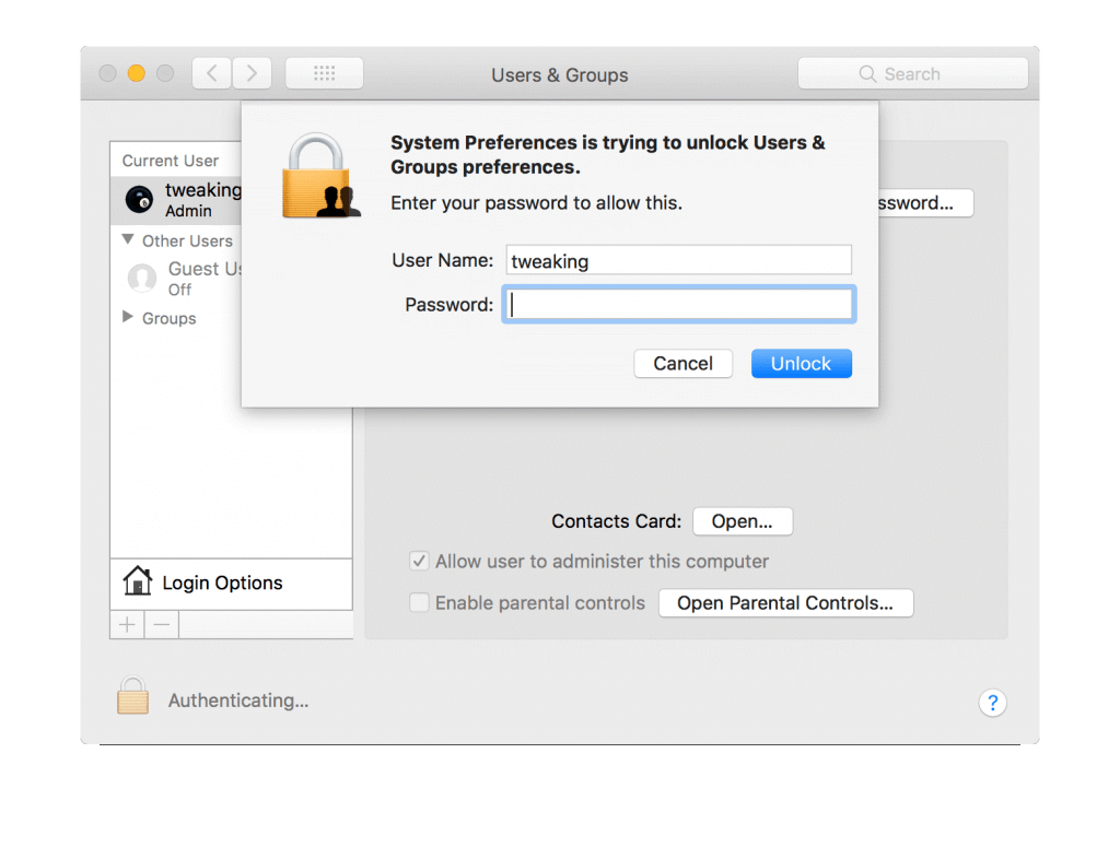 ステップ3 - 管理者のパスワードを入力したら、左下隅に表示できるロックアイコンをクリックします。クリックしてくださいロックを解除します。