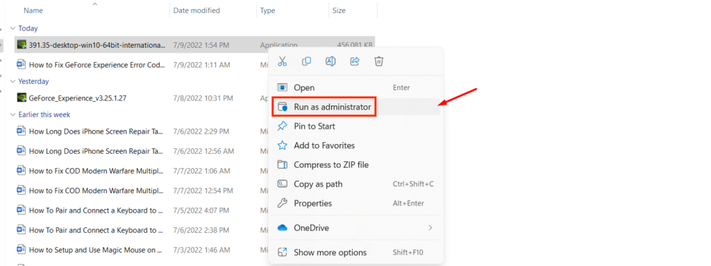 2。PCのダウンロードセクションに移動し、セットアップを右クリックしてクリックします管理者として実行します。