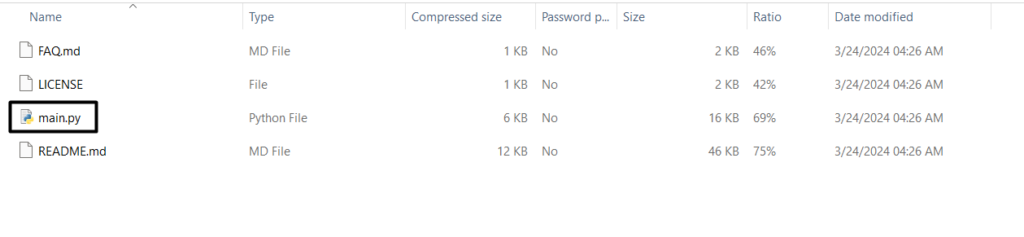 4。Windows 11 PCでファイルを抽出し、ダブルクリックしますmain.py矢印でファイル。