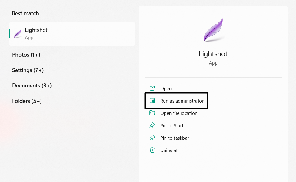 3。右クリックメニューから、を選択します管理者として実行します管理者として実行するオプション。
