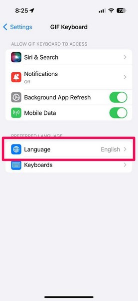 6. iPhoneのGIFキーボード設定を確認してください