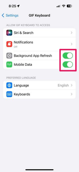 これで、デバイスを最新のiOS 17に更新した後、iPhoneで問題が発生していないGIFキーボードの体験を開始した場合は、GIFキーボードアプリが有効になっているかどうかを確認する必要があります。多くのユーザーにとって、GIFキーボードアプリは、デバイスを最新のiOSアップデートに更新した後、iPhoneのiMessageのために無効になりました。