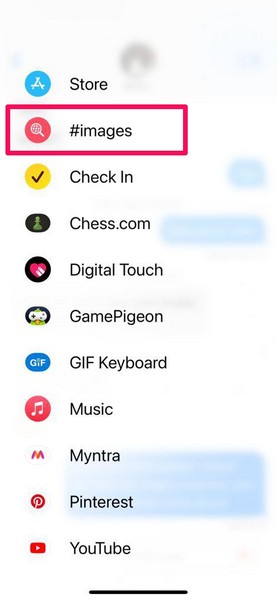 実際、Imessageには、チャットシステムに統合された独自のGIFエンジンもあります。メッセージアプリのオーバーフローメニューの2番目のページに表示され、#imagesというタイトルが付けられています。 #Imagesアプリは、デフォルトでiMessageで利用できます。
