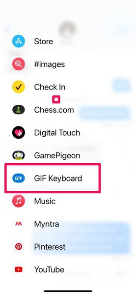 メッセージアプリがiPhoneで再起動した後、リストからチャットを開き、ImessageアプリリストでGIFキーボードが利用できるかどうかを確認します。