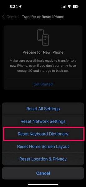 iPhoneで機能していないGIFキーボードを解決しようとするもう1つのことは、キーボード辞書のリセットです。このトリックは、デバイスのGIFキーボードで問題を解決する可能性がありますが、試してみる価値があります。