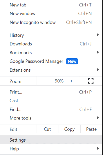 ステップ2:ドロップダウンメニューから[設定]を選択します。