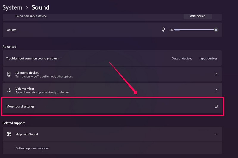 3。下にスクロールして見つけますその他のサウンド設定オプションをクリックして開きます。
