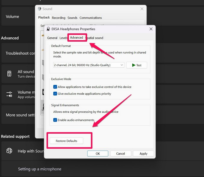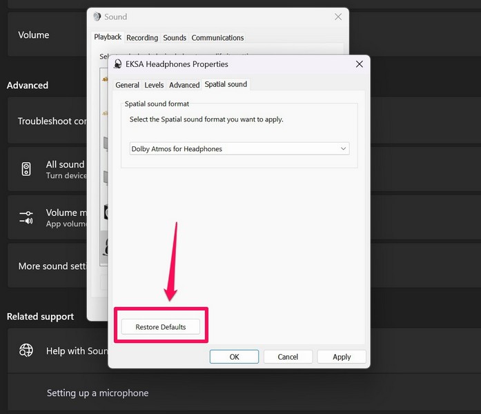 したがって、Windows 11のヘッドフォンのデフォルト設定に復元するには、次の手順に従ってください。