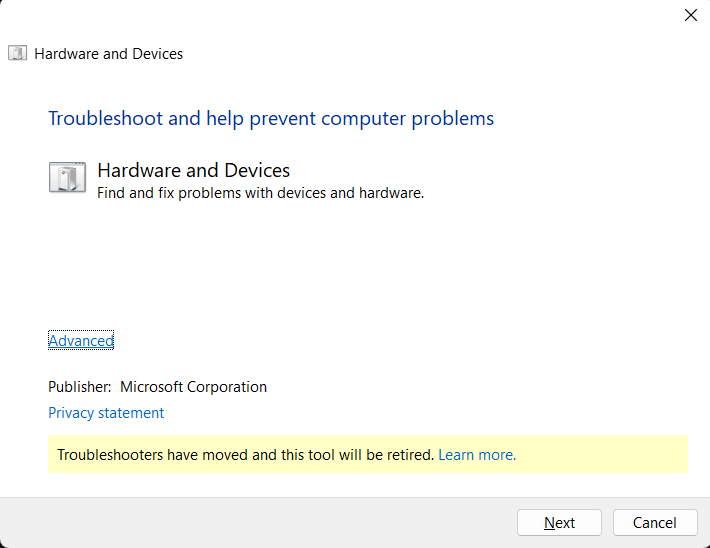 Windows 10 PCを実行している場合は、できますこの投稿のソリューション番号3を参照してくださいハードウェアトラブルシューティングの実行方法を確認してください。 Windows 11の場合、以下の手順に従ってください -