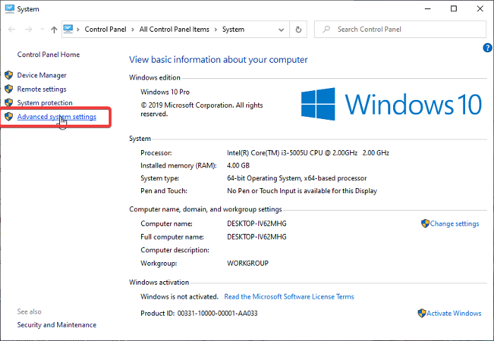 2。選択します高度なシステム設定ポップアップウィンドウ。