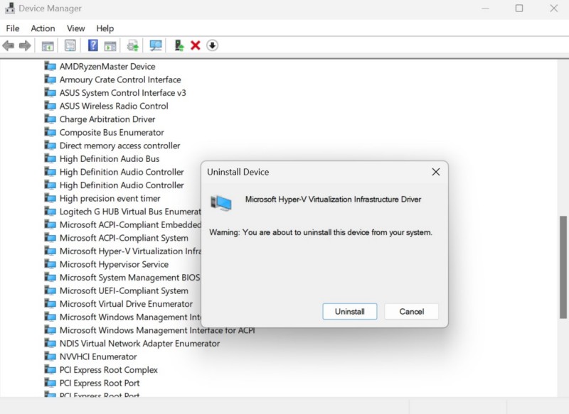 Windows 11 PCまたはラップトップのHyper-V仮想化インフラストラクチャドライバーとハイパーバイザーサービスドライバーを更新しても、ハイパーバイザーエラーが解決しなかった場合、両方のドライバーを再インストールすることができます。したがって、下の手順に従って、デバイスの上記のドライバーを再インストールしてください。