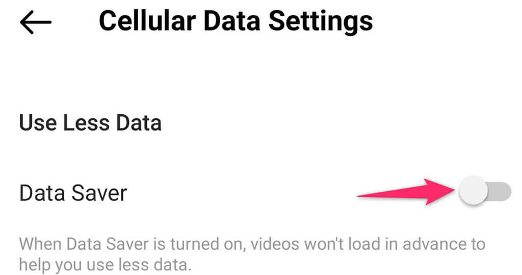 iPhoneとAndroidの両方のInstagramは、モバイルデータの使用を保存するためのデータセーバーモードを提供します。 Instagramアカウントでこのオプションをオンにした場合、それがアプリが遅れている理由かもしれません。これは、Data Saverモードではアプリが最大限に実行されないためです。