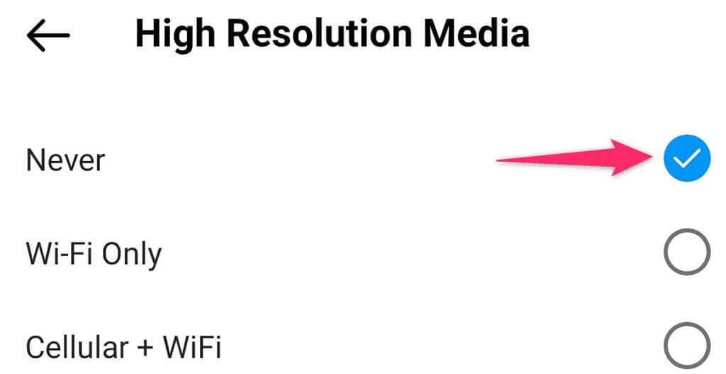 幸いなことに、Instagramで高品質のメディアをオフにすることができます。これにより、問題が解決する可能性があります。