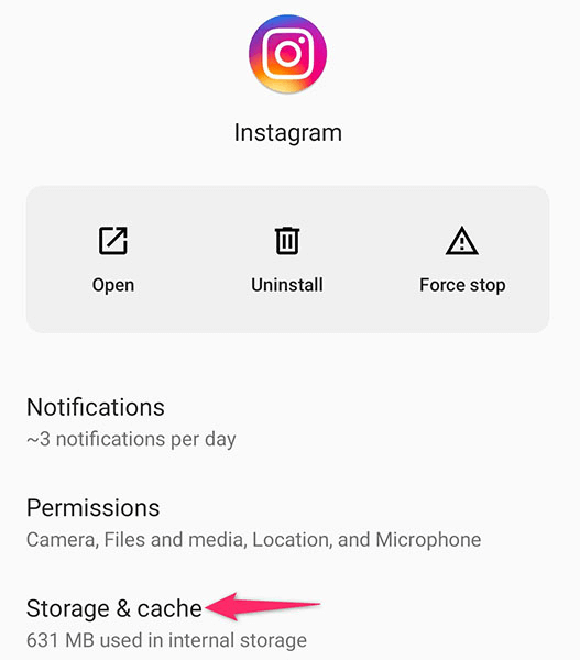 幸いなことに、Instagramのキャッシュファイルを削除して、問題を解決する可能性があります。 iPhoneはアプリのキャッシュをクリアするオプションが提供されていないため、Android電話でのみこれを行うことができることを知ってください。