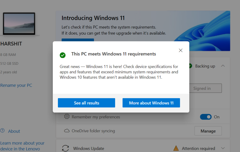 3。あなたが見たら「このPCは現在、Windows 11のシステム要件を満たしていません」画面上のメッセージ、それはあなたのPCのハードウェアがWindows11を実行できないことを意味します。それ以外に、あなたは「このPCはWindows11の要件を満たしています」画面上のメッセージ。