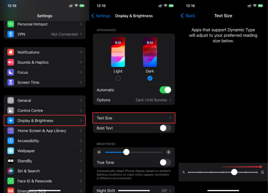 iPhoneが顔に近い場合にのみ画面距離がトリガーされるため、iPhoneのテキストが小さすぎる場合は、おそらくiPhoneのテキストを見るのに苦労するでしょう。このようなシナリオでは、iPhoneのディスプレイのテキストサイズを変更してみてください。方法がわからない場合は、これらの簡単な指示に従ってください。