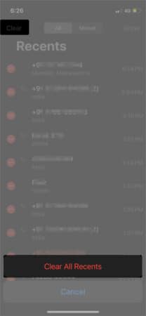 これは、エラーを修正する最も効果的な方法です。多くのiPhoneユーザー(私を含む)は、電話アプリの最近のコールログをクリアした後、問題に直面するのを停止しました。