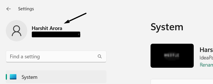 2。[設定アプリの左上]に、システム名をクリックしてアカウント設定を開きます。