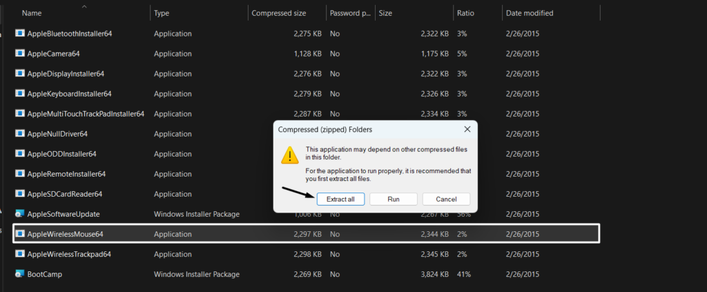 6。終わったら、それを許可してください。抽出されたら、ファイルを保存した場所に移動し、ダブルクリックしてAppleWirelessMouse64アプリ、および画面上のプロンプトに従ってドライバーをインストールします。