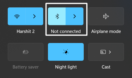 マジックマウスのスクロール機能がまだシステムに接続されている間も機能していない場合は、Bluetoothを再検討してみてください。 Windows 11/10でBluetoothを再度に再び可能にするには、をクリックしますバッテリーアイコンディスプレイの右下隅で開くクイックアクションセンター。