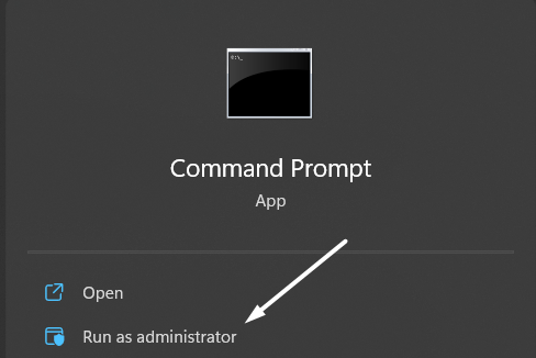 1。まず、開きますWindows検索ボックス、 タイプコマンドプロンプト、およびを選択します管理者として実行します管理者の権利でそれを開くオプション。