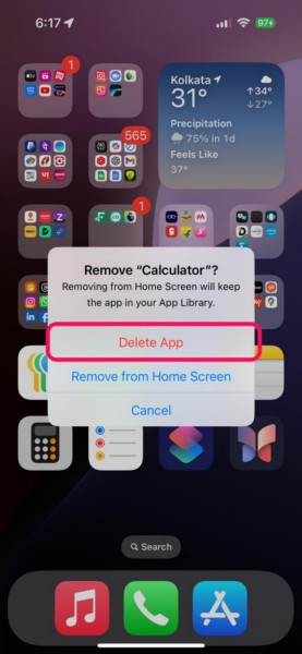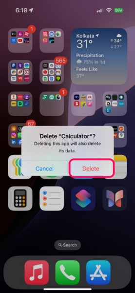 計算機では問題のない問題は、iOS 18のiPhoneでのノートアプリでは、アプリ内の技術的な異常のために発生する可能性があります。この場合、iPhoneから計算機またはノートアプリをアンインストールして、同じものを再インストールして、Maths Notes機能がデバイスで適切に機能するかどうかを確認できます。