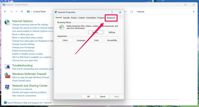 7。インターネットオプションウィンドウとコントロールパネルウィンドウを閉じます。