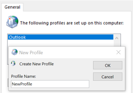 3。に新しいメールプロファイルに適切な名前を入力してくださいプロフィール名:テキストフィールドとをクリックしますわかりましたボタン。